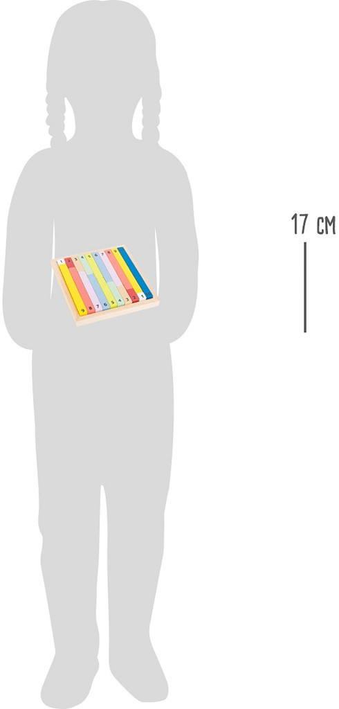 19 db FSC® fa pálcika keretben, számolási készség fejlesztésére. Különböző hosszúságok segítenek az összehasonlításban. Előző cikkszám: 10847.