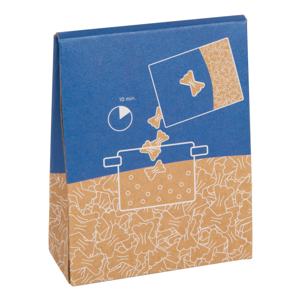12 db fa farfalle tészta természetes kinézettel, újrazárható kartondobozban. Hátoldalon képes „főzési útmutató” a kicsiknek is.