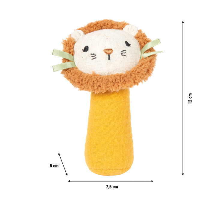 Ez az aranyos oroszlános csörgő tökéletes első játék a legkisebbek számára. Puha anyaga és finom csörgő hangja ösztönzi a baba érzékszerveinek fejlődését.