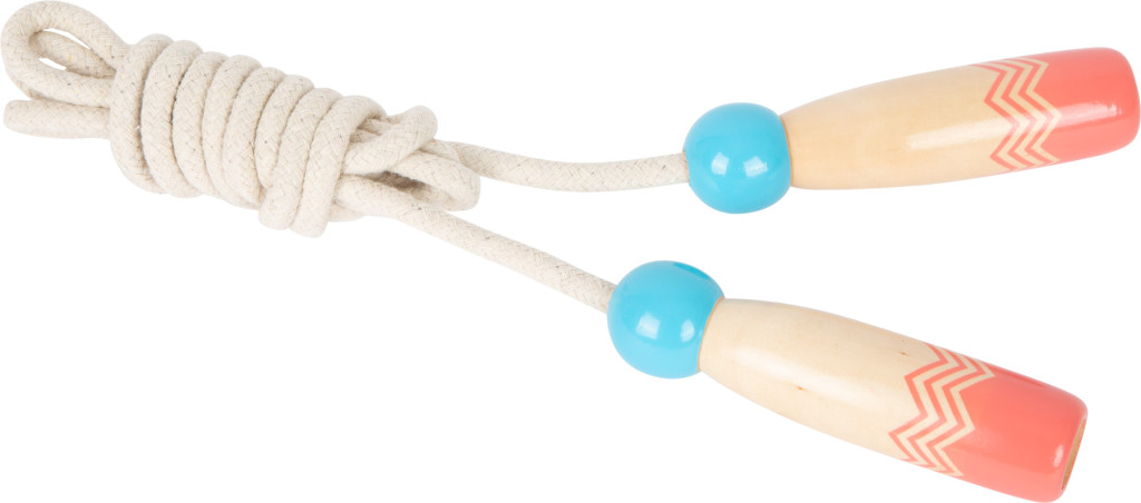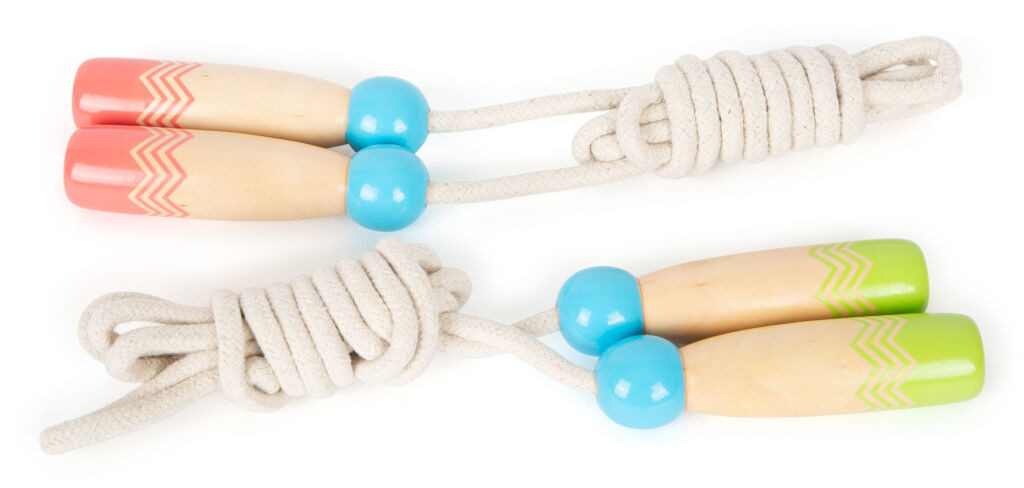 2 darab ugrókötél FSC® fa nyéllel. Hossz állítható. Színes kötelek, kerek fogantyú. Fejleszti az ügyességet, erőnlétet és állóképességet. Klasszikus mozgásfejlesztő játék beltérre és kültérre.