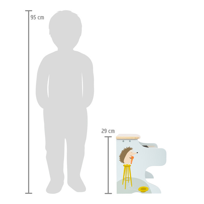 Elektronikus fa gyerekzongora kiváló hangzással, vidám, kék tónusú dizájnnal. Billentyű-matrica és kottalap segíti az első dallamokat. Ritimus- és hallásfejlesztésre ideális. (Elem nem tartozék.)