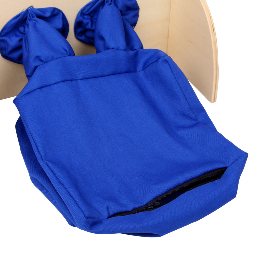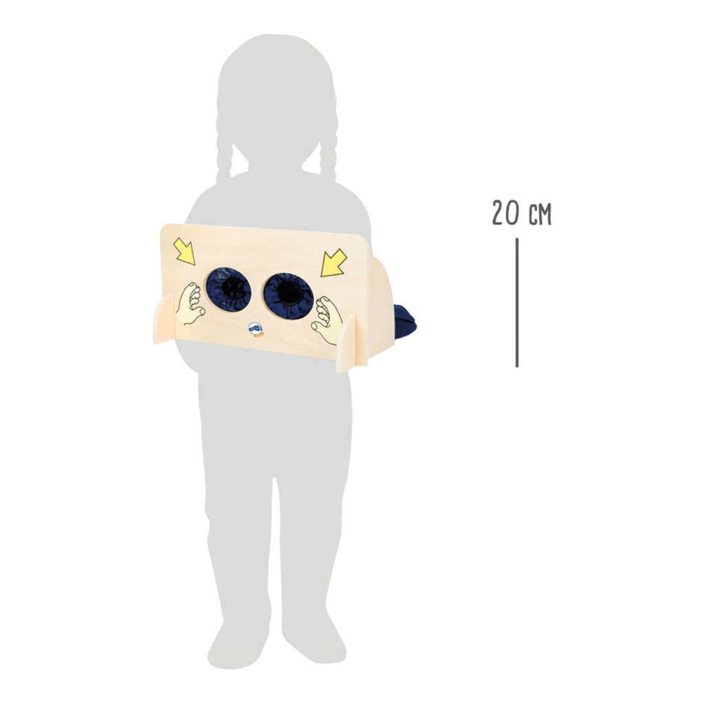 Izgalmas érzékelős játék: különböző tárgyakat kell egy textilzsákba helyezni, amely egy tömör fal mögött található. A gyerekek feladata, hogy pusztán tapintás alapján felismerjék, mi van a zsákban. Fejleszti a megfigyelést, a finommotorikát és az érzékelést.