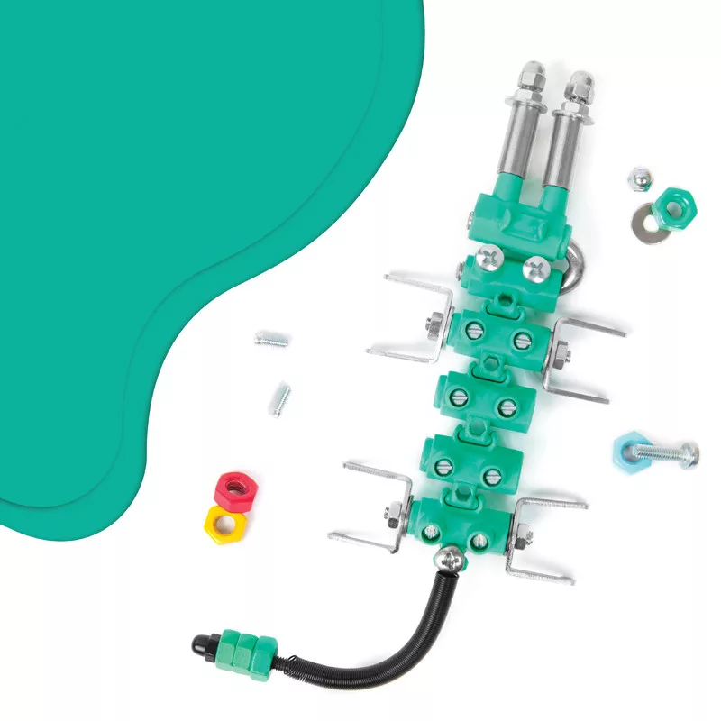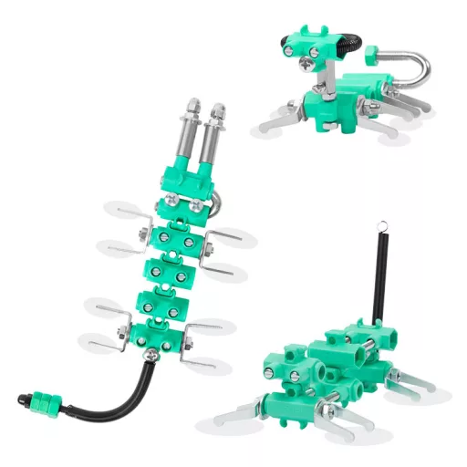 A készlet fejleszti a finommotorikát, a térbeli gondolkodást és a problémamegoldást. A mellékelt szerszám segíti az összeállítást, a hétköznapi tárgyakkal való kombinálás pedig még több lehetőséget ad.