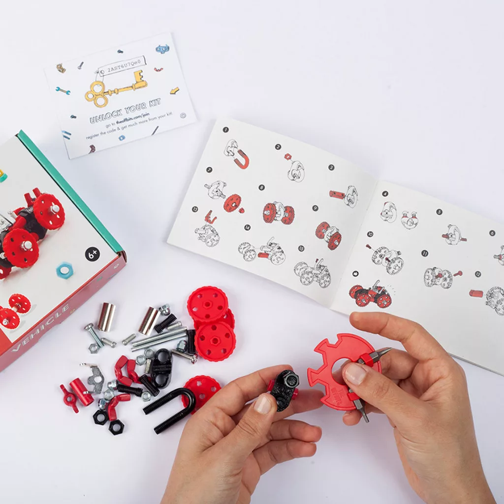 A készlet játék közben fejleszti a finommotorikát, a térbeli gondolkodást és a problémamegoldó készséget. A mellékelt szerszám megkönnyíti az összeállítást, a hétköznapi tárgyakkal való kombinálás pedig még több ötletnek ad teret.
