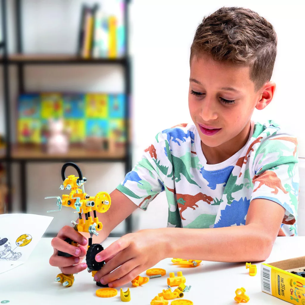A készlet játékosan fejleszti a finommotorikát, a térbeli gondolkodást és a kreativitást. A mellékelt szerszám segíti az építést, a hétköznapi tárgyakkal való kombinálás pedig még több variációt nyit meg.