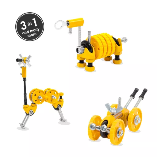 Az építés során fejlődik a kézügyesség, a logikus gondolkodás és a kreativitás. A készlet hétköznapi tárgyakkal is kombinálható, így még több saját ötletet lehet kipróbálni, a mellékelt szerszám pedig segíti az összeállítást.