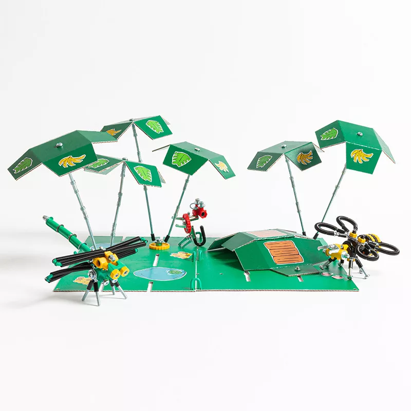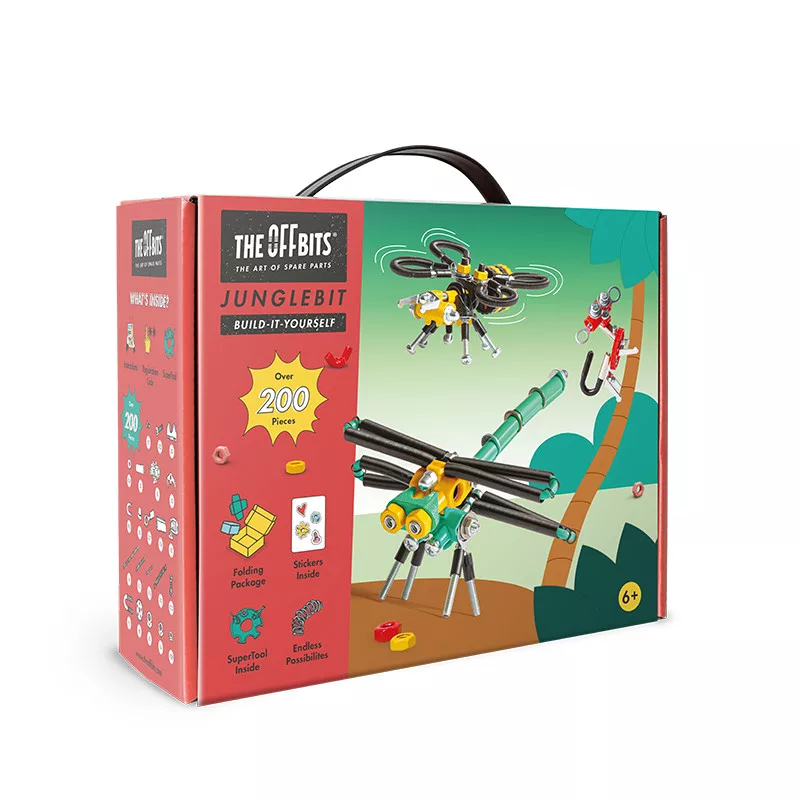 Ez a vidám JungleBit készlet három különleges figurával és egy játékba bevonható csomagolással teszi még izgalmasabbá az alkotást. A gyermeked méhecskét, majmot és szitakötőt is építhet, miközben saját dzsungelvilágot hozhat létre.