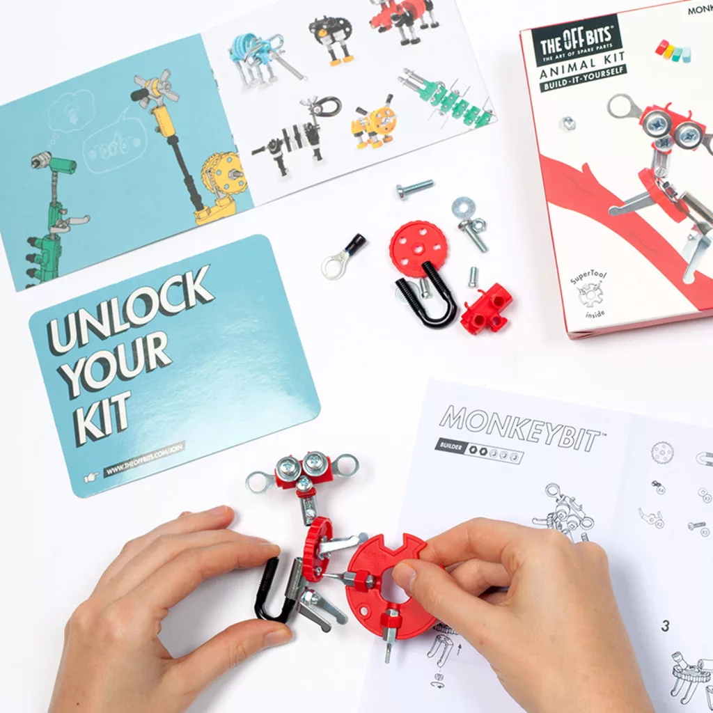 Ez a vidám MonkeyBit készlet játékos alkotásra hívja a gyerkőcöket. A színes elemekből egy különleges majom építhető meg, miközben a fantázia is szabadon szárnyalhat, és újabb saját ötletek is életre kelhetnek.