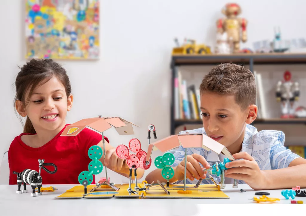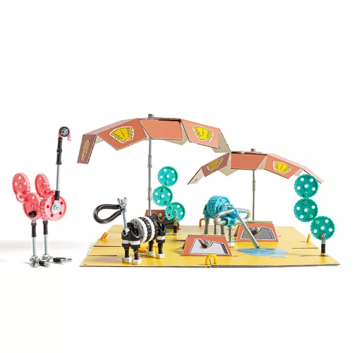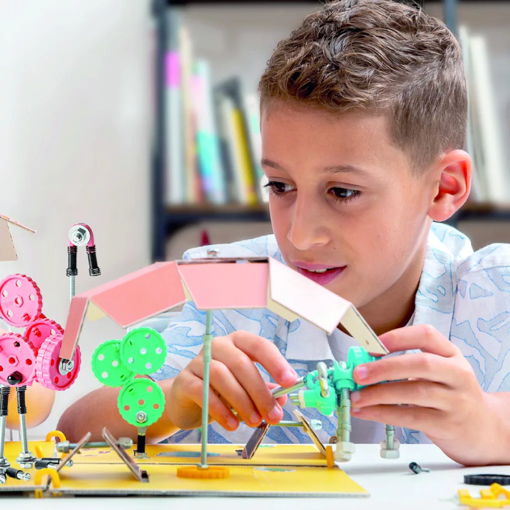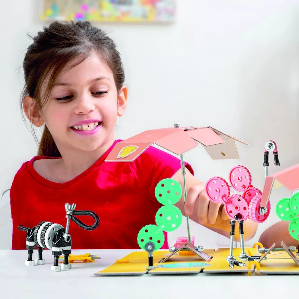 A több mint 200 elemből sokféle figura és saját ötlet is megvalósítható. A készlet fejleszti a finommotorikát, a kreativitást és a problémamegoldást, miközben játékosan leköti a figyelmet.