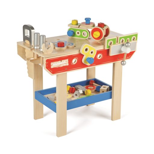 Nech sa stane čokoľvek, mladí nastávajúci tesári môžu akúkoľvek závadu opraviť vďaka tomuto ponku s vybavením. Farebný ponk obsahuje 43 doplnkov (zverák, pílu, kladivo, skrutkovač, kľúč aj.), ktoré budú deti inšpirovať k hodinám predstavivé hry. Ponk je dostupný zo všetkých strán, má robustnú konštrukciu, môže si u neho hrať viac detí naraz. V spodnej časti nájdete policu, na ktorú si deti môžu odkladať nástroje, ktoré práve nepoužívajú. Každý nástroj a doplnok je robustný a má perfektnu veľkosť - tak akurát pre detské ruky. Mladí tesári sa naučia poznávať základné nástroje a ako s nimi pracovať. Podporuje kreatívnú a představivú hru. Rozvíja koordináciu ruka-oko, jemnú motoriku a zručnosť. Po vybaleniu je nutné zložiť. Vyrobené z kvalitných materiálov zo zodpovedných zdrojov. Zodpovedá európskej bezpečnostnej norme.  Hlavné vlastnosti: 43 doplnkov pevná konštrukcia ideálne pre hru viac detí naraz podporuje kreativitu a predstavivosť rozvíja jemnú motoriku a zručnosť