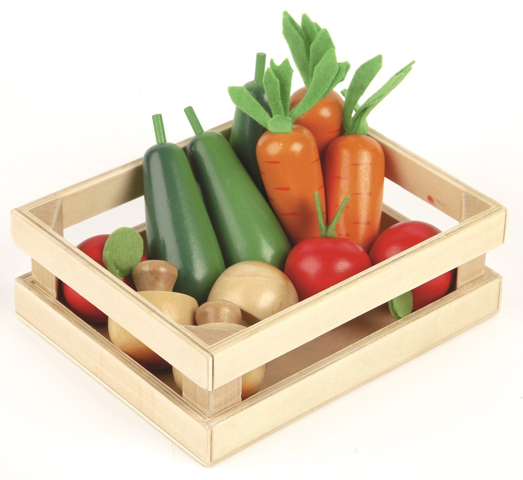 Táto nádherná sada drevené zeleniny má všetko, čo začínajúci mladí kuchári potrebujú na uvarenie zdravého jedla. Sada obsahuje huby, mrkvy, cukety a paradajky. Zelenina je dodávaná v praktickej drevenej prepravke a je kompatibilný s obchodom a divadlom Tkľud. Všetko je autenticky detailné. Táto hracia sada je ideálna sadou pre každého začínajúceho mladého kuchára alebo obchodníka. Deti sa môžu naučiť a začať rozoznávať názvy potravín, ktoré konzumujú. Je to skvelý spôsob, ako učiť malé deti o dôležitosti zdravej a vyváženej stravy, odkiaľ pochádza naše jedlo a ako pripravujeme jedlo. Skvelý spôsob, ako podporiť interaktívne a nápadité hranie rolí a rozvíjať sociálne zručnosti a obratnosť. Vyrobené z vysoko kvalitných a zodpovedne pochádzajúcich materiálov.  Hlavné vlastnosti: autenticky detailné podporuje kreativitu a predstavivosť
