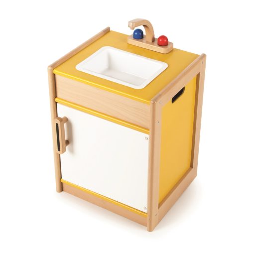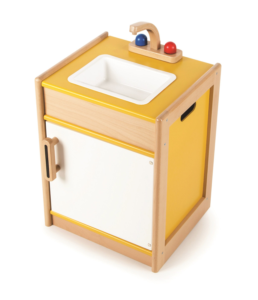 Žiadna kuchyňa nie je kompletna bez drezu, kde by sa dal umyť všetek špinavý riad. Tento drevený drez obsahuje kohútik, otvárateľné predné dvere a úložné miesto pod drezom, kde deti môžu uložiť huby, saponáty a iné veci, ktoré potrebuje každá kuchyňa. Zároveň je možné vybrať plastové umývadlo a zľahka ho umyť! Skvelý spôsob ako deti naučiť, že po jedle je dôležité po sebe upratať. Na boku má rukoväte k ľahšiemu uchopeniu. Podporuje kreatívnú a predstavivú hru. Kombinujte s ostatnými Tidlo kuchynskými spotrebičmi a vytvorte hravou kuchyňu! Po vybaleniu je nutné zložiť. Vyrobené z kvalitných materiálov zo zodpovedných zdrojov. Zodpovedá európskej bezpečnostnej norme. Hlavné vlastnosti: otvárateľné predné dvere, úložné miesto pod drezom a vodovodný kohútikvyťahovacie plastové umývadlopodporuje kreatívnú a predstavivú hru