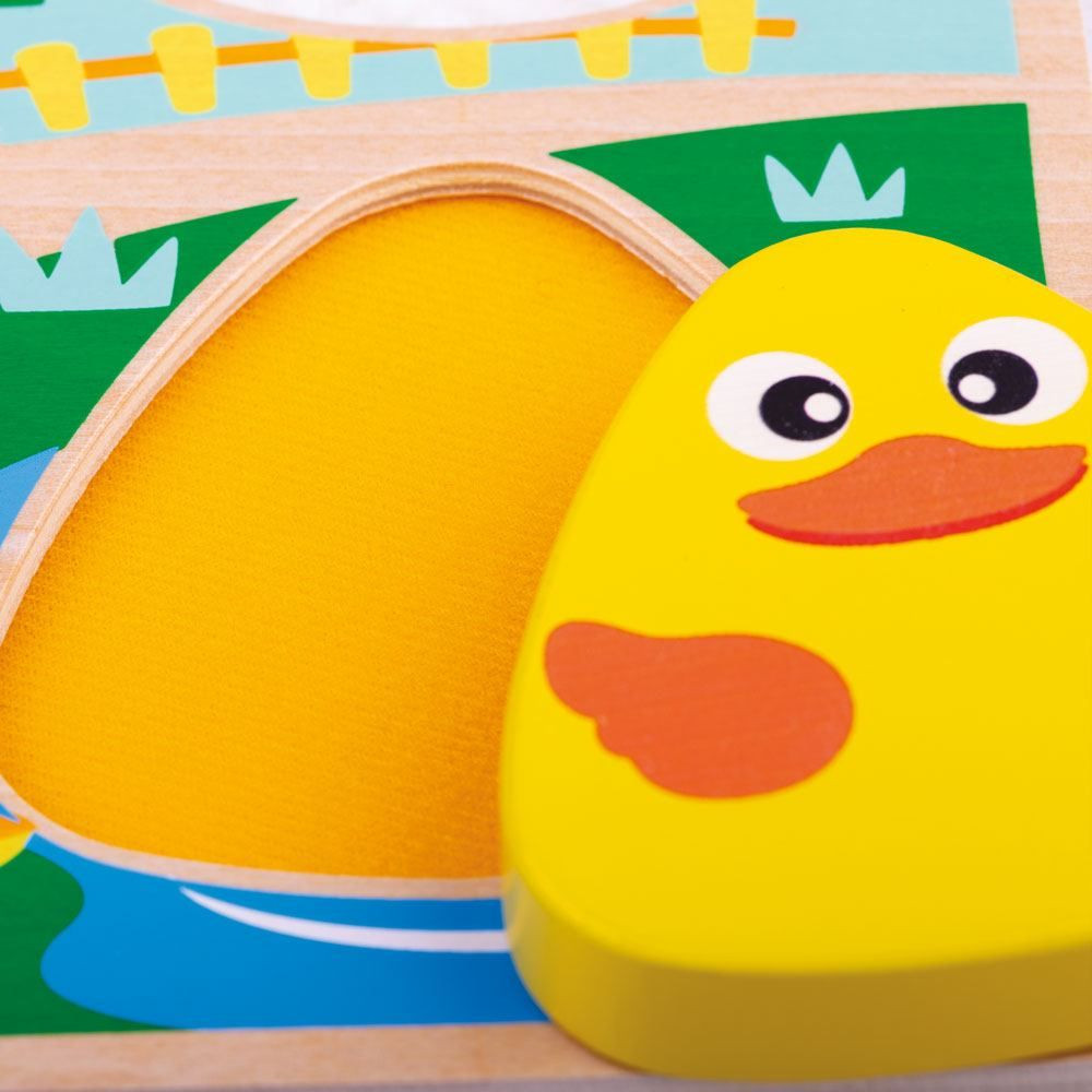 Pocíťte vlnenú ovcu alebo opereniu kačicu ... To sú len 2 zo štruktúr, ktoré môžu deti s touto hračkou objaviť. Zvieratá, ktoré sú ilustrované v prostredí farebnej farmy - prasa, kačica, ovce a krava. Senzorické puzzle je ideálny hračkou pre skorý rozvoj dieťaťa. Vyberte dieliky puzzle a objavte 4 rozdielne štruktúry, ktoré sa pod nimi skrývajú. Mladí umelci môžu dieliky použiť na obkresľovanie. Podporuje skoré poznávanie tvarov. Rozvíja koordináciu ruka-oko, jemnú motoriku a zručnosť. Vyrobené z kvalitných materiálov z zodpovedných zdrojov. Zodpovedá európskej bezpečnostnej norme.  Hlavné vlastnosti: senzorické puzzle pre skorý rozvoj dieťaťa4 rozdielne štruktúry rozvíja jemnú motoriku a zručnosť