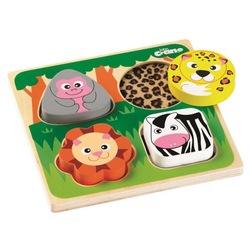 Pocíťte chlpatú gorilu alebo huňatého leva ... To sú len 2 zo štruktúr, ktoré môžu deti s touto hračkou objaviť. Zvieratá, ktoré sú ilustrovaná v prostredí safari - gorila, lev, leopard a zebra. Senzorické puzzle je ideálny hračkou pre skorý rozvoj dieťaťa. Vyberte dieliky puzzle a objavte 4 rozdielne štruktúry, ktoré sa pod nimi skrývajú. Mladí umelci môžu dieliky použiť na obkresľovanie. Podporuje skoré poznávanie tvarov. Rozvíja koordináciu ruka-oko, jemnú motoriku a zručnosť. Vyrobené z kvalitných materiálov z zodpovedných zdrojov. Zodpovedá európskej bezpečnostnej norme.  Hlavné vlastnosti: senzorické puzzle pre skorý rozvoj dieťaťa 4 rozdielne štruktúry rozvíja jemnú motoriku a zručnosť