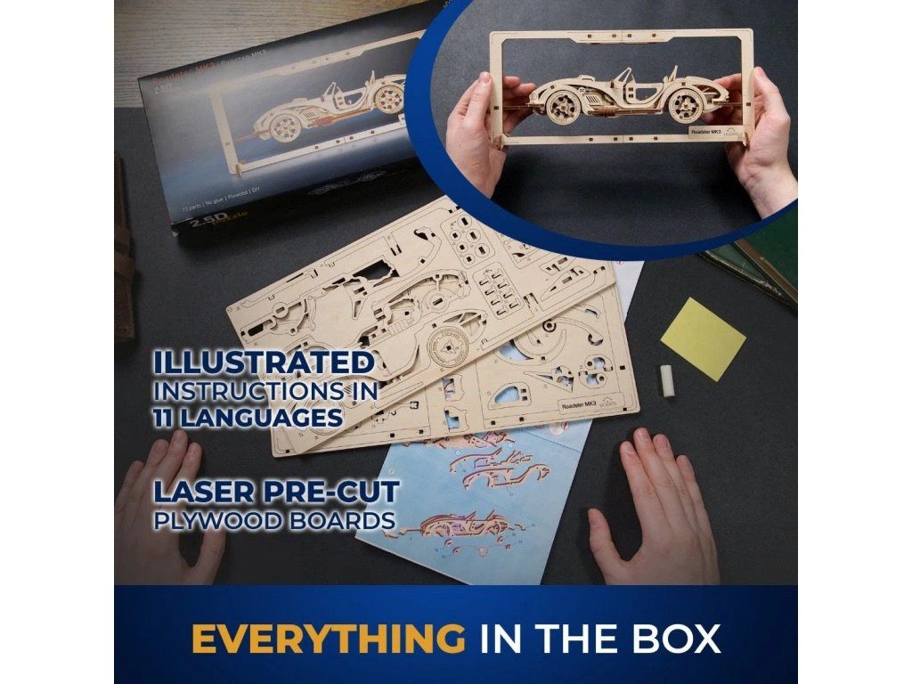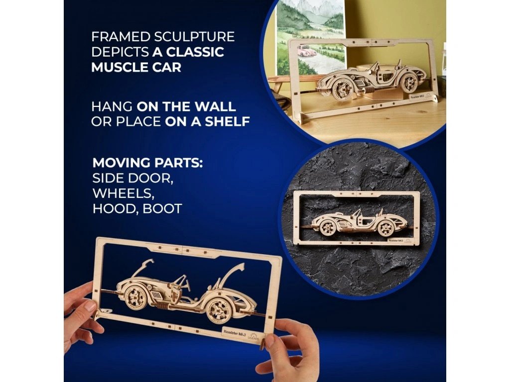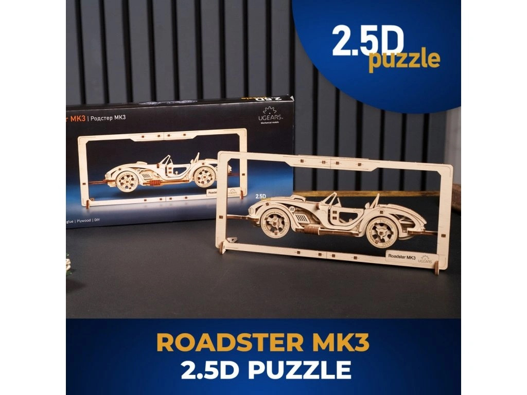 Ugears 2,5D fa mechanikus puzzle - Roadster MK3 - JátékManufaktúra