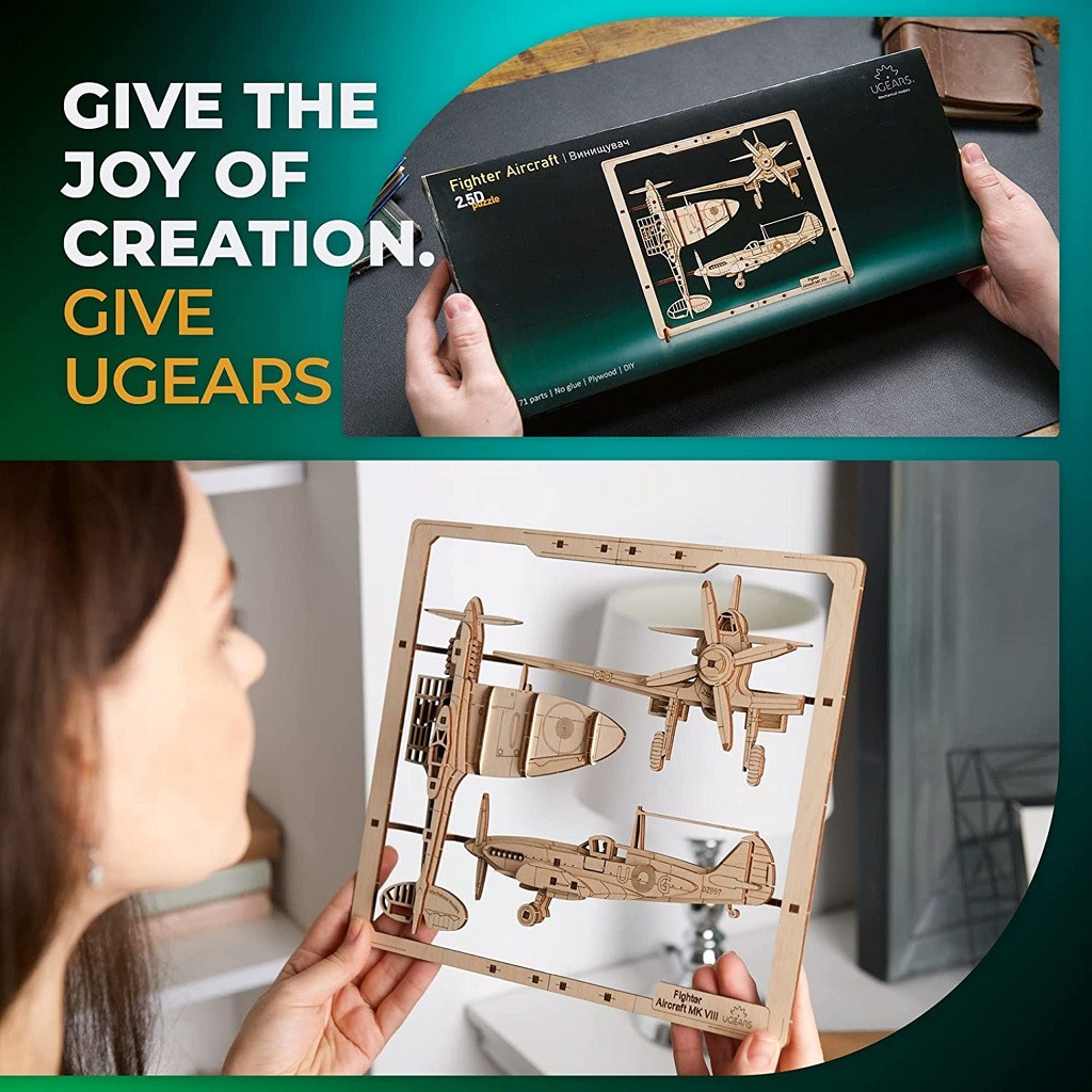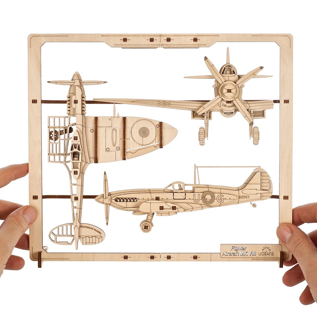 Ugears 2,5D fa mechanikus puzzle - Vadászrepülő - JátékManufaktúra