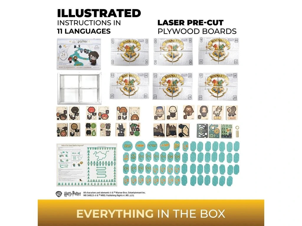 Kreatív advent: 24 kis, licencelt HP-minimodellt építesz meg, amelyek együtt hangulatos varázsvilág-díszletté állnak össze. A készlet könnyű szintű, így kezdők és gyerekek (szülői segítséggel) is sikerélménnyel építenek. A lézervágott faelemek ragasztó nélkül pattinthatók össze; a mellékelt ábrás útmutató lépésről lépésre vezet. Az elkészült tárgyak – házak címerei, varázstárgyak, apró mechanikus meglepetések – polcon, íróasztalon vagy karácsonyi dekor részeként is jól mutatnak. Nem édesség, hanem maradandó élmény, ami fejleszti a türelmet és a kézügyességet.