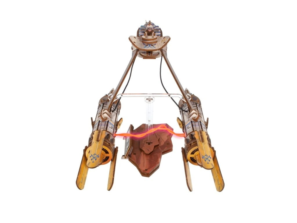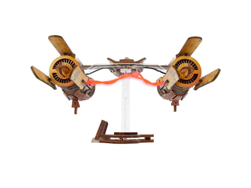 A verseny sikló két erős hajtóműből áll, amelyeket egy világító LED plazmaív köt össze. Ez az ikonikus energiahíd a filmekből ismert látványos hatást kelti életre.
