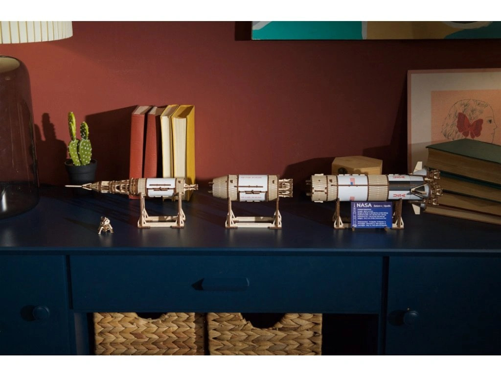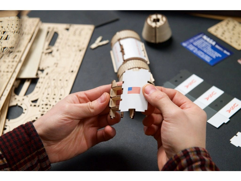 A történelem leghatalmasabb rakétája fa változatban. A háromfokozatú modell leválasztható egységekkel, nyitható panellekkel és összeilleszthető holdkomppal érkezik. A háromrészes állvány függőleges vagy vízszintes kiállítást is enged, akár szétválasztott fázisokkal. Precízen elővágott faelemekből, ragasztó nélkül építhető; a részletes útmutató miatt a kezdők is bátran belevághatnak. Lenyűgöző nappali- vagy iroda-dekor, amely a mérnöki teljesítmény iránti tiszteletet is kifejezi – a Saturn V minden űrrajongó álomprojektje.