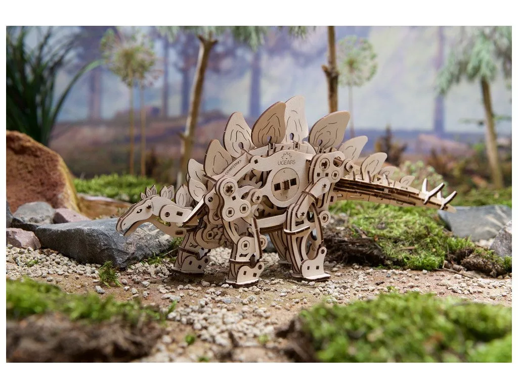 Ugears 3D fa mechanikus puzzle - Stegosaurus (járó) - JátékManufaktúra