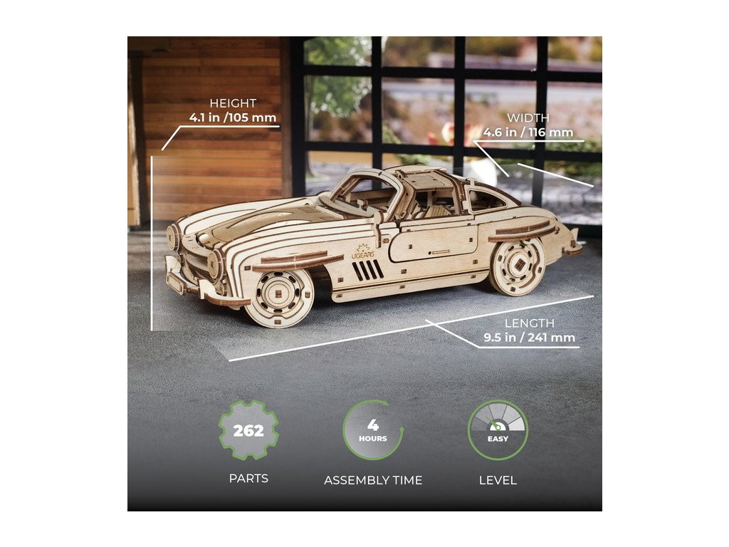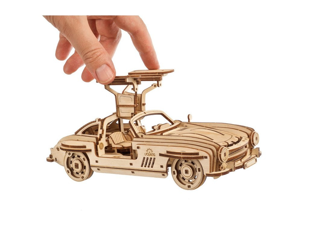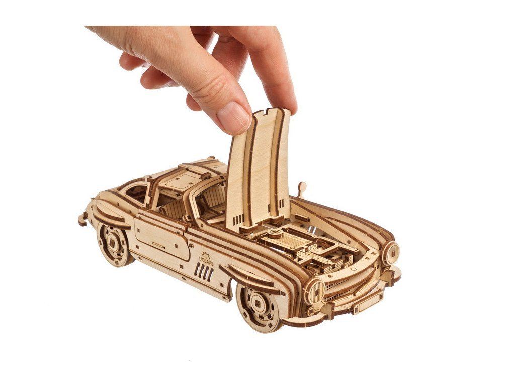 „Sirályszárnyas” sportkupé két hajtásmóddal: racsnis kulccsal felhúzható, vagy visszahúzással indítható. Felnyitható motorházfedél, kormányozható futás, áramvonalas vonalak – a ’80-as évek ikonikus kupéinak hangulatával. A dobozban minden kellék (csiszoló, viasz, képes leírás 11 nyelven). 262 elem, közepes nehézség; a kész modell önállóan gurul. Tervezve-gyártva Ukrajnában.