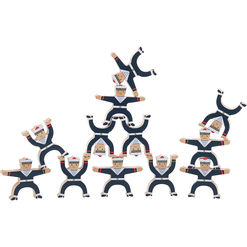 Ki épít magasabb tornyot a tengerészekből? A 12 darab, tömör fából készült, gyönyörűen lakkozott figura egyedül és társaságban is remek elfoglaltság. Finommotorikát, fókuszt és kreatív gondolkodást edz, közben ikonikus dísze lesz a polcnak. A sorozat a francia haditengerészettel együttműködésben készült, Franciaországban gyártva – klasszikus minőség, időtálló dizájn.