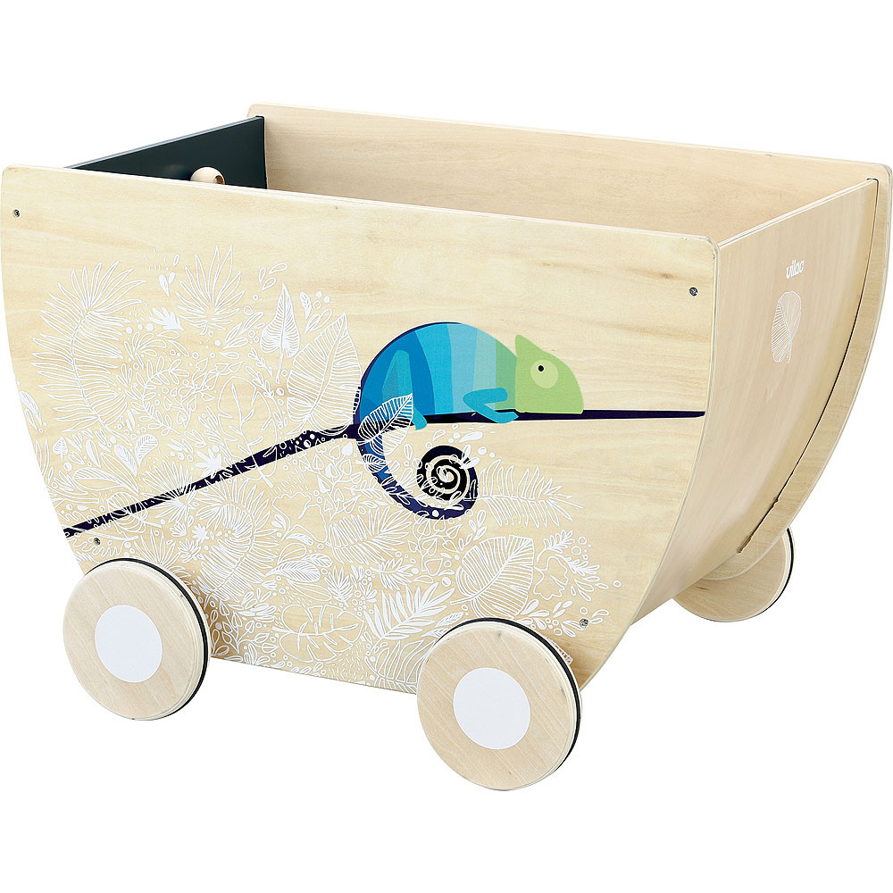 Masszív, fa húzható kocsi gumírozott kerekekkel a csendes, padlóbarát gördülésért. A természetes és színes elemek, valamint a kedves panda- és kaméleon-grafika barátságossá teszik a tárolást: a gyerekek örömmel viszik benne játékaikat. Praktikus segítőtárs rendrakáshoz és szerepjátékhoz. Figyelem: a kocsi nem gyermek szállítására készült. Tartós, biztonságos kivitel, amely a mozgást, a koordinációt és a felelősségtudatot is támogatja a mindennapokban.