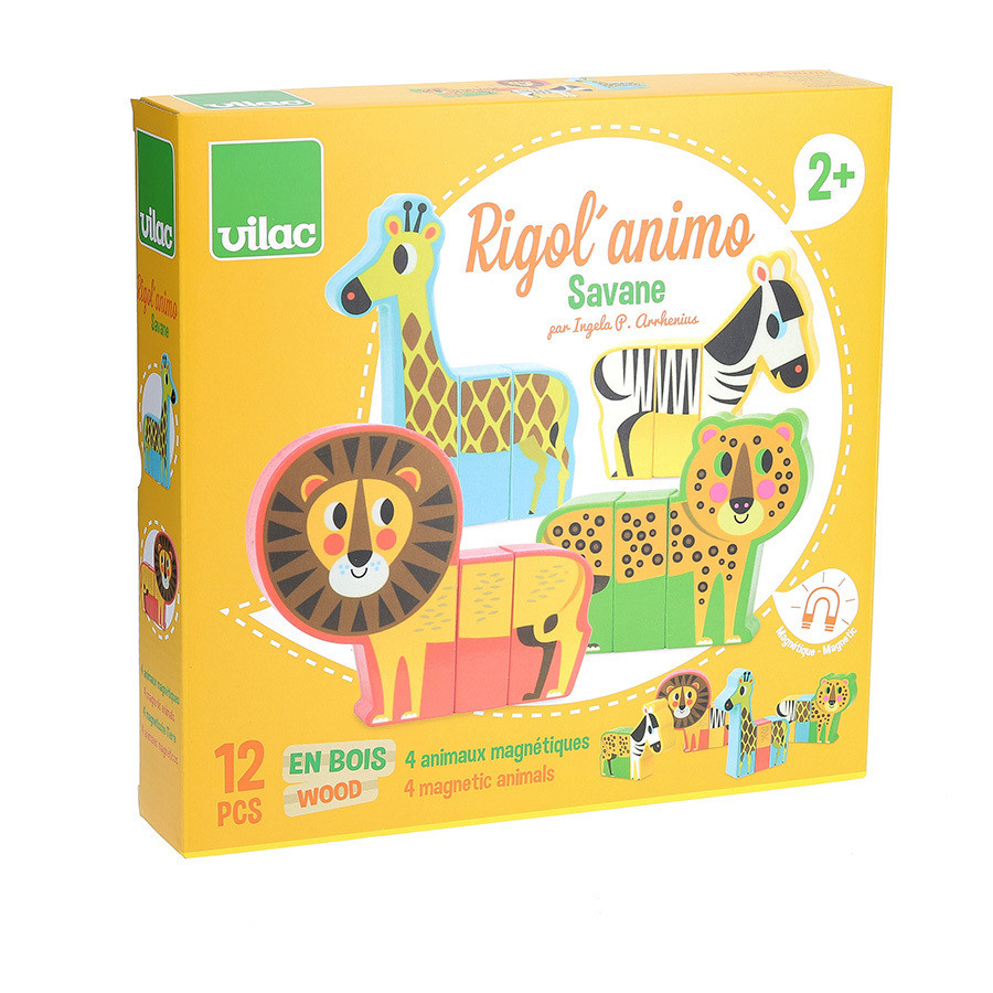 Négy kedves szafariállat mágneses, cserélhető feje–törzse–lába végtelen mókát ígér. A gyerekek saját „fantázialényeket” rakhatnak ki, miközben fejlődik a kézügyesség, a kreatív gondolkodás és a történetmesélés. Ingela P. Arrhenius illusztrációi pasztell színekkel és letisztult formákkal varázsolnak barátságos hangulatot. A masszív fa elemek jól bírják a mindennapi játékot, a mágnesek biztosan tartanak. Ideális választás szabad, nyitott végű alkotáshoz.