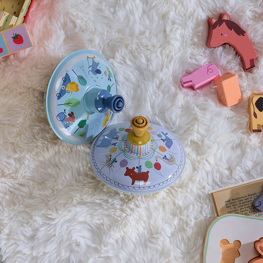 Időtálló klasszikus modern köntösben: a Sarah Betz-kollekció pörgettyűi három témában (állatok, vásár, közlekedés) érhetők el. A masszív fém test és a pisztonos indítás sima, hosszan tartó forgást ad, ami kiválóan edzi a kéz ügyességét és a koncentrációt. Esztétikus mintái mesélésre késztetik a gyerekeket, így a játék közös történetalkotássá válik. Ajándéknak is telitalálat, kis helyen elfér, mégis felejthetetlen élményt nyújt.