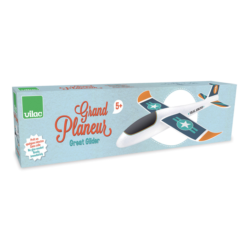 Nagyméretű, könnyű polisztirol vitorlázó, amely pillanatok alatt összerakható, ragasztó nélkül. A szárnyakra ragasztható matricák személyessé teszik a gépet, a súly és forma pedig szép, hosszú siklásokat ígér. Parkban, udvaron, strandon is bevethető – kiválóan edzi a dobás technikáját, a becslést és a türelmet. Klasszikus „dobd és repül” élmény, amely a gyerekeket és a felnőtteket is kimozdítja a szabadba.