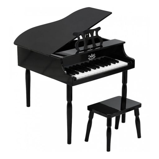 Látványos, fekete „zongorakáva” székkel és 30 billentyűvel – igazi sztárdarab a nappaliban. A mellékelt kottalapok segítik az első dallamok tanulását, a billentyűzés pedig fejleszti a ritmust, a figyelmet és a finom kézmozdulatokat. Stabil fa felépítés, elegáns lakkozás, gyermekbarát méret: a kicsik magabiztosan ülhetnek a „színpadra”. Remek közös program a családnak, amely egyszerre játék és tanulás. Fontos: utánzat, nem professzionális hangszer; hangja játékos gyakorlásra készült.