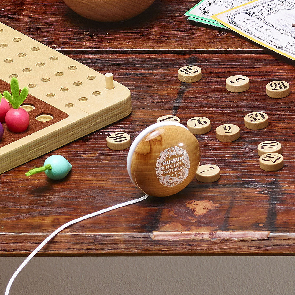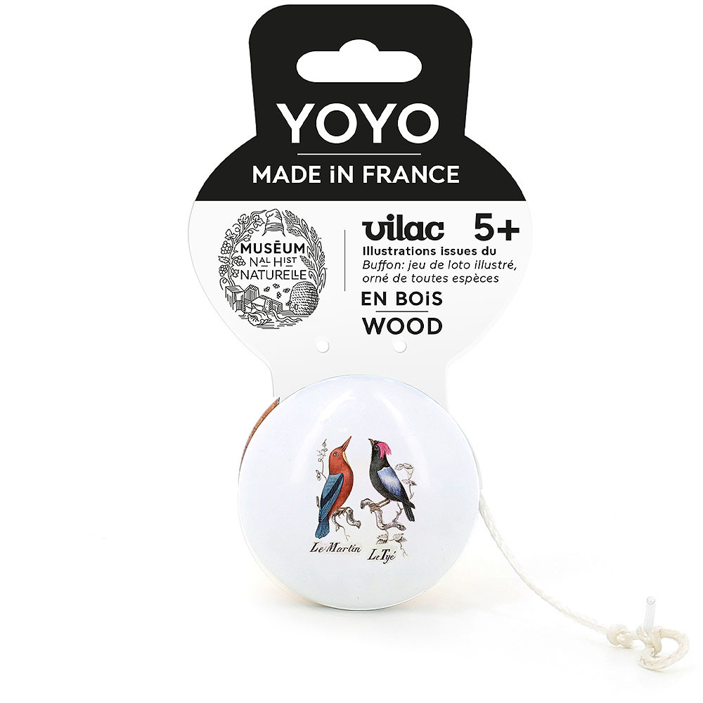 Finom madár-illusztrációkkal díszített, lakkozott fa jojó. Múzeumi együttműködés, minőségi francia gyártás.