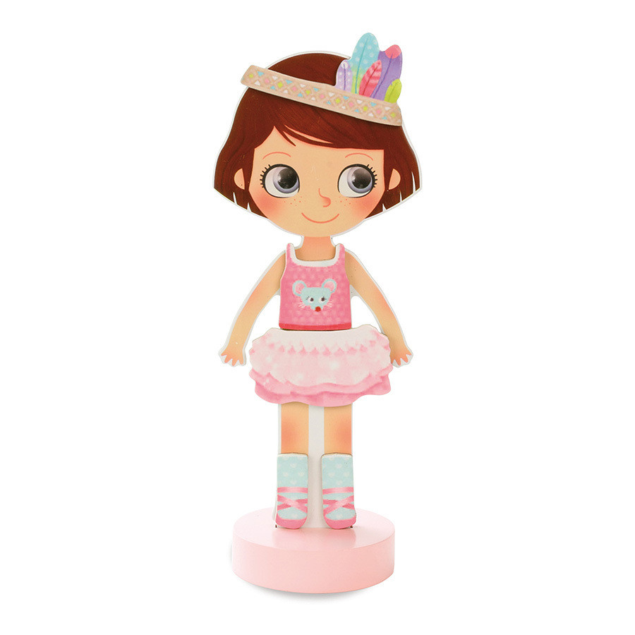 Chloe imádja a divatot, és most a gyerekek kedvük szerint öltöztethetik fel különféle szettekbe. A 22 cm magas fa alapfigurához 37 darab mágneses ruhadarab és kiegészítő tartozik, így mindig új kombinációk hozhatók létre. A játék fejleszti a kreativitást, a képzelőerőt és a kézügyességet, miközben a kicsik élvezettel válogatnak a különböző stílusok közül. Az öltöztetős bábuk hosszú ideig lekötik a gyerekeket, akik saját történeteket és szerepjátékokat alkothatnak.