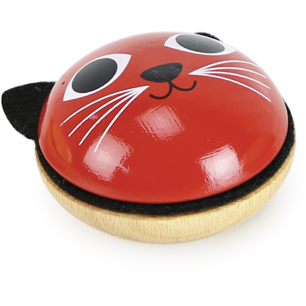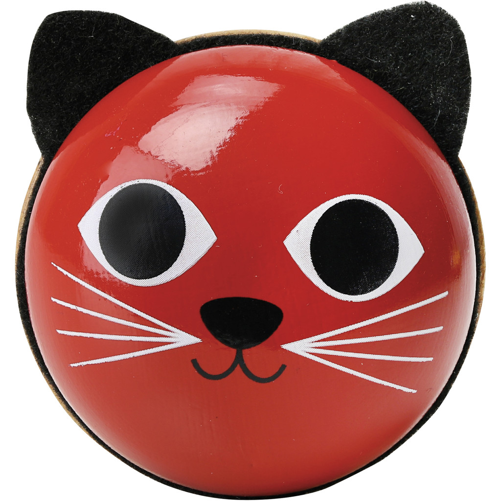 A piros cica formájú melodikus játék egyben csörgő és rumbagolyó is, amelyet Ingela P. Arrhenius illusztrációja díszít. Franciaországban készült fából és filcből, 8 cm átmérővel. A játék fejleszti a ritmusérzéket, a hallást és a finommotorikát, miközben kedves formája miatt hamar a gyerekek kedvence lesz. A különleges dizájn játék közben és dekorációként is jól mutat, így igazi érték minden kis zenész számára.