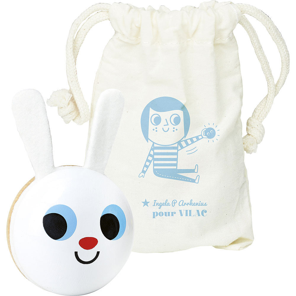 A bájos nyuszi alakú melodikus játék csörgőként és rumbagolyóként is örömet szerez. Ingela P. Arrhenius retro hangulatú grafikájával készült, Franciaországban gyártott fa–filc kombinációból. A kompakt, 8 cm-es méret könnyen megfogható a legkisebb kezeknek is. Segíti a hallás és a ritmusérzék fejlődését, ösztönzi a kéz–szem koordinációt és a tapintásos felfedezést. Strapabíró, időtálló darab, amely játék közben és polcdíszként egyaránt helytáll. Remek ajándék babalátogatóba.