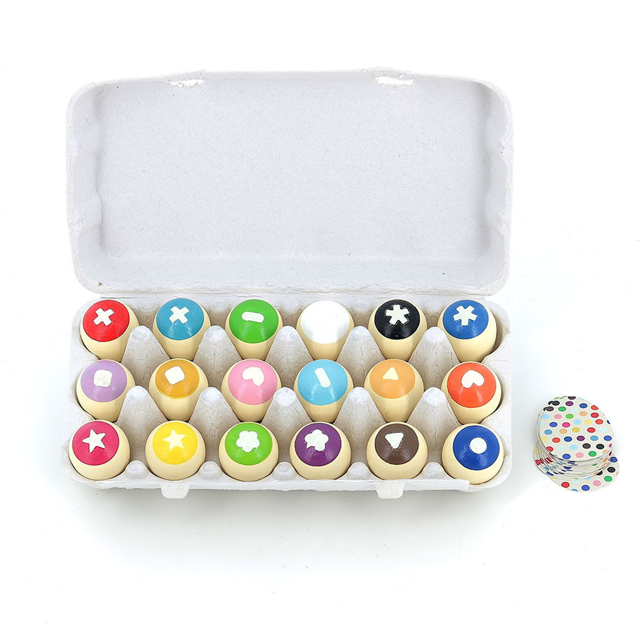 Memóriajáték két nehézségi szinten, „tojásos” köntösben. A doboz tojástartót, 18 fa tojást és 18 feladványkártyát rejt. Az alapjátékban párokat kell keresni vizuális emlékezet alapján, a haladó módban pedig kártyák által jelzett színkombinációkat kell kipárosítani. A játékmenet rövid és pörgős, így kitűnő családi program 3 éves kortól. A koncentráció, a vizuális megkülönböztetés és a logikus gondolkodás is fejlődik, miközben a minőségi fa elemek kellemes tapintásúak és tartósak.