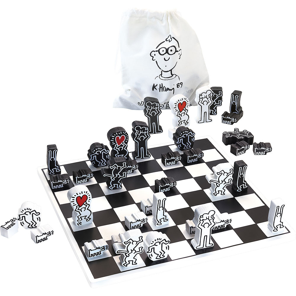 Ikonikus pop-art köntösben újjászülető klasszikus. A letisztult fa tábla és a kontrasztos, Keith Haring-motívumokkal díszített bábuk egyszerre játékeszközök és design-tárgyak. A készlet dekoratív megjelenése a nappaliban is megállja a helyét, miközben teljes értékű sakkélményt ad kezdőknek és haladóknak. A stratégiai gondolkodás, a tervezés és a koncentráció fejlesztésének elegáns eszköze, amely ajándéknak is telitalálat minden művészet- és táblásjáték-rajongónak.