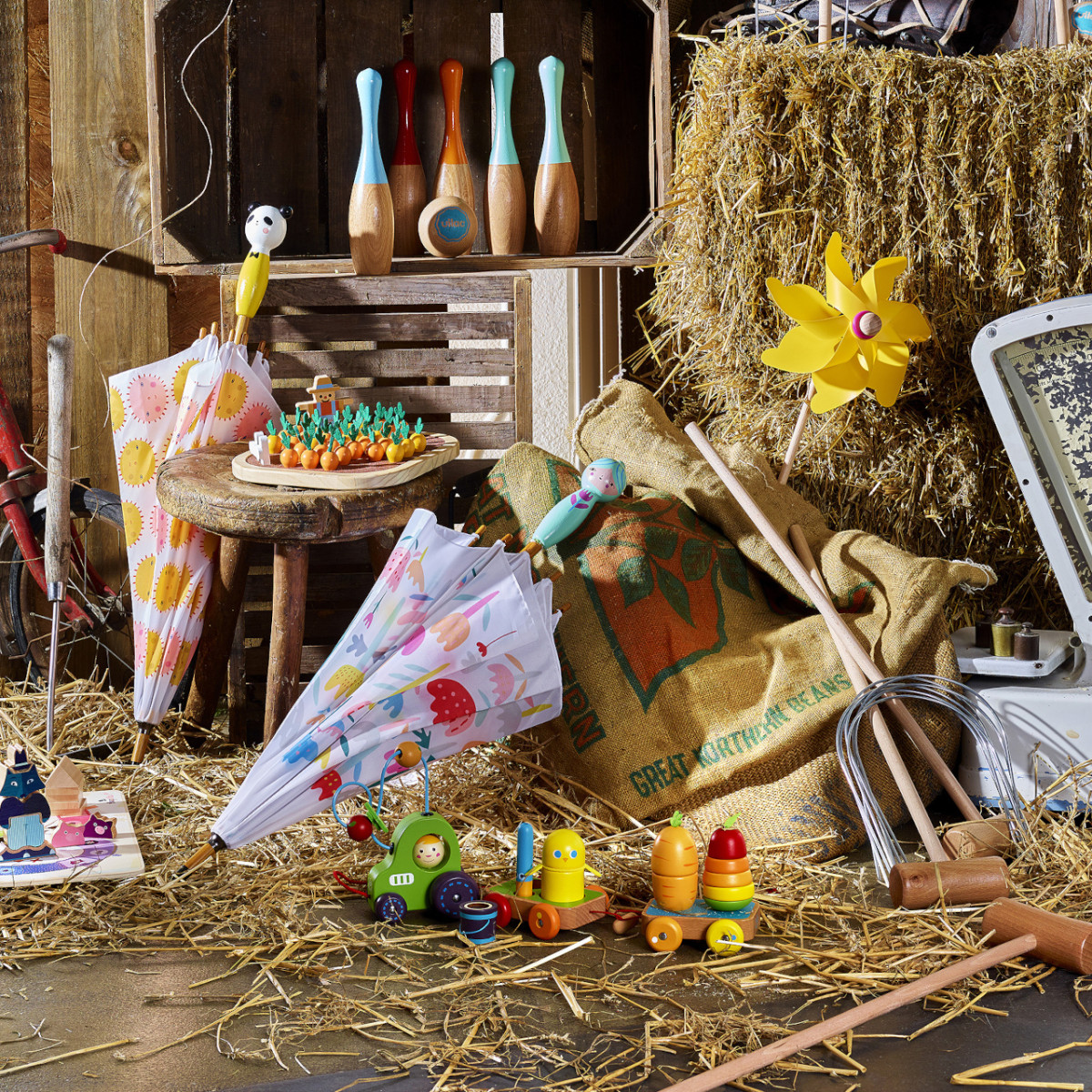 • Építő- és szerepjátékok: fa építőkészletek, járművek, babaházak és piacos szettek, amelyek a kreativitást és a szerepjátékot ösztönzik.