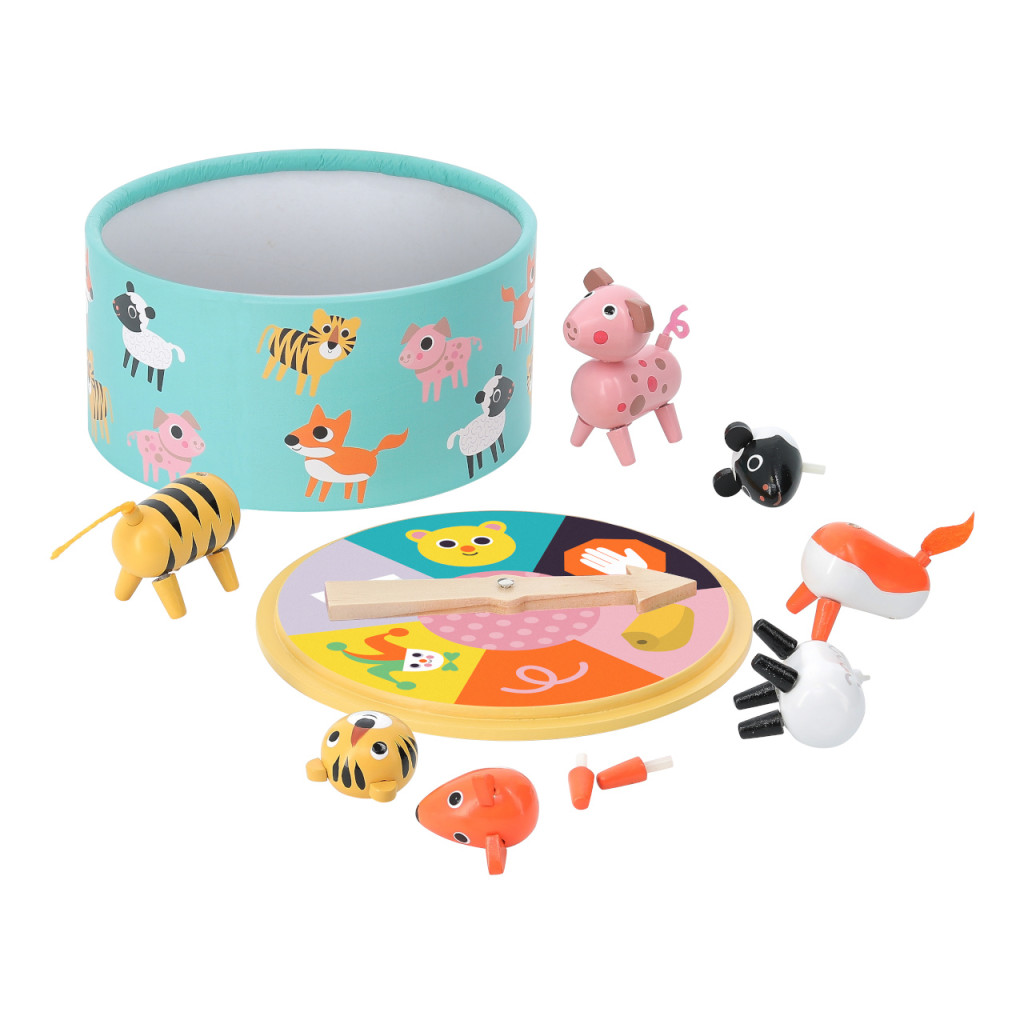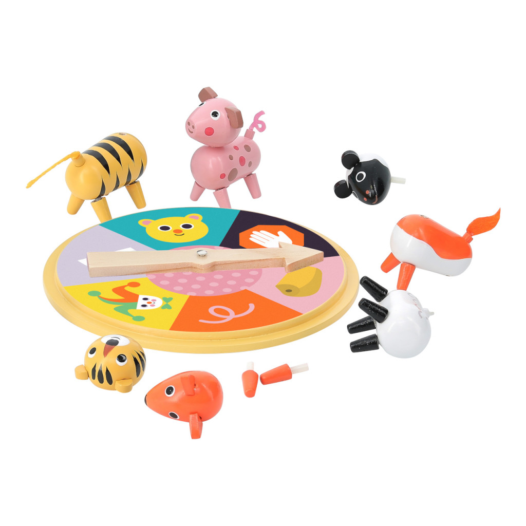 Pörgess és rakd ki az állatod! A szerencsekerék dönti el, melyik testrészt helyezheted fel – fejet, törzset, négy lábat és farkat. Gyors, vicces családi játék 2–4 főnek, nagy méretű, strapabíró elemekkel; a kedves állatfigurák önálló játékként és dekorációként is megállják a helyüket. A szabályok egy pillanat alatt elsajátíthatók, így kisebb testvérek is bekapcsolódhatnak. Fejleszti a megfigyelést, a kéz-szem koordinációt és a türelmet, miközben garantált a nevetés minden körben.