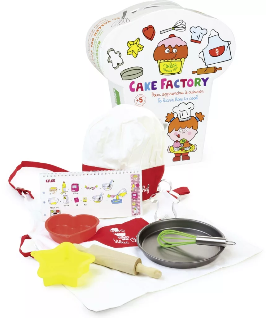 Cukrászműhely a gyerekszobában: kötény, szakácssapka, sütikiszúró, habverő, tepsi, sodrófa és kis „receptkönyv” érkezik egy mókás, sapka alakú dobozban. A készlet játékosan vezeti be a kicsiket a sütés világába – közben fejlődik a finommotorika, a sorrendiség és a türelem. A szerepjátékok támogatják a kommunikációt és a közös alkotást: a gyerekek megtervezik, „megsütik”, majd felszolgálják a desszertet. Remek családi program, amely kreativitásra, együttműködésre és önállóságra tanít, ráadásul könnyen elpakolható.