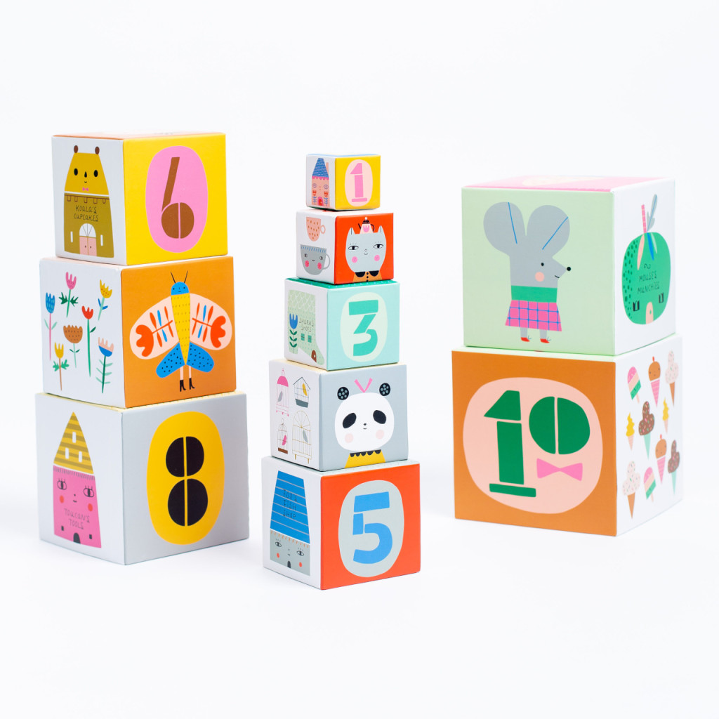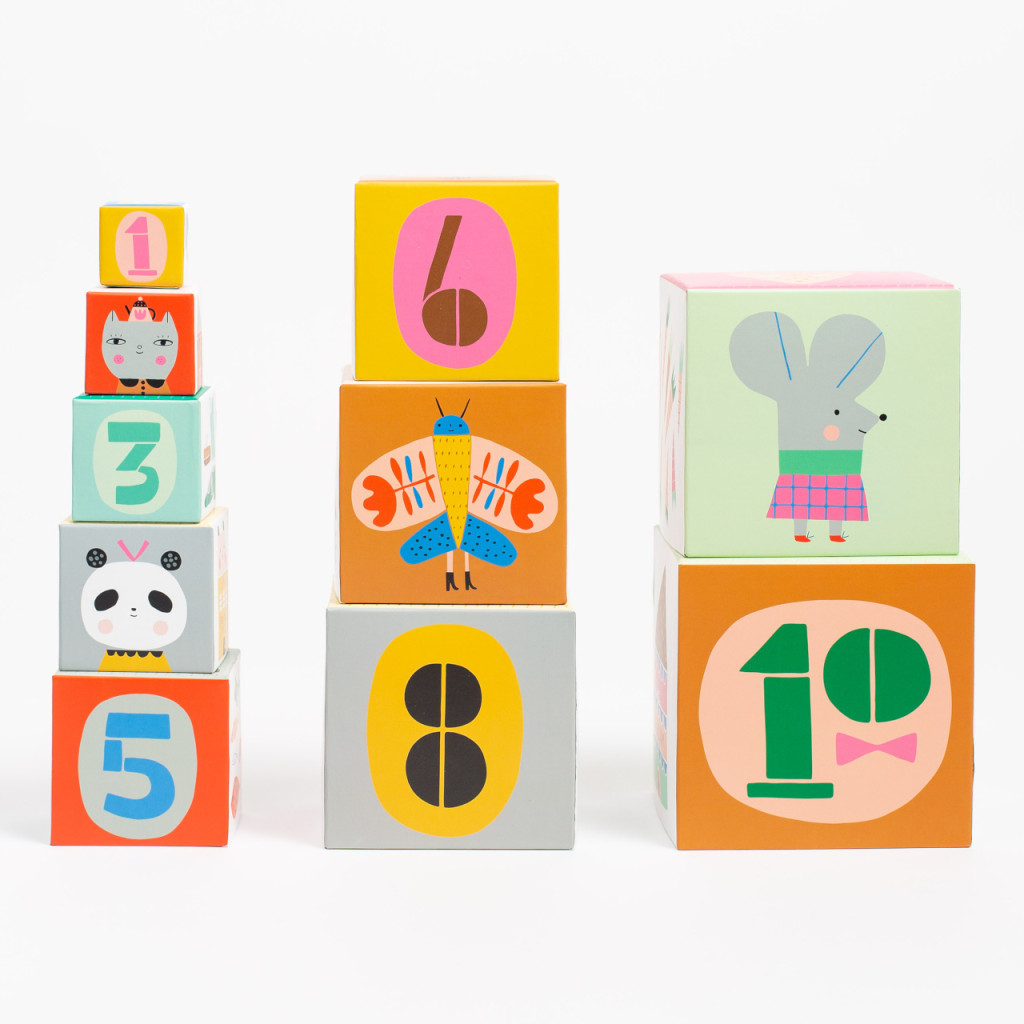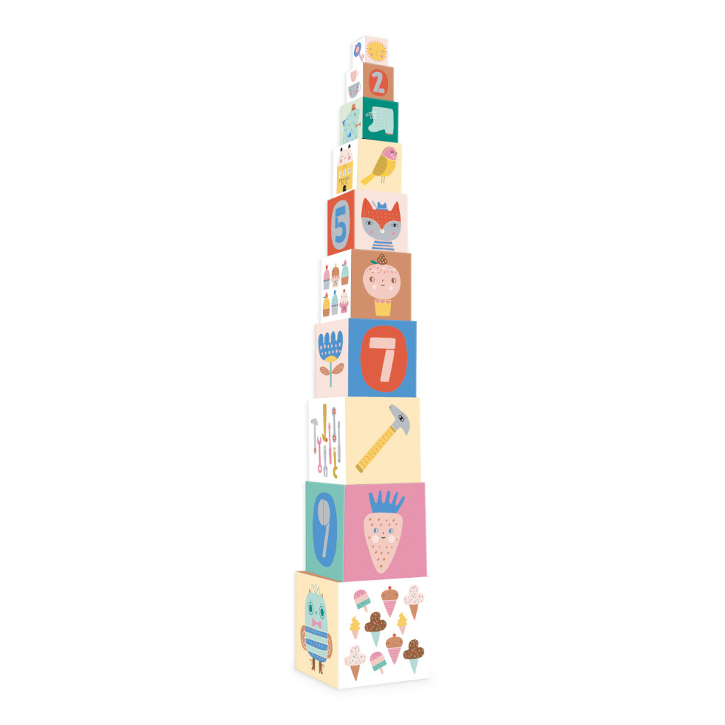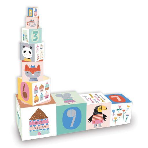 Suzy Ultman játékos illusztrációival díszített 10 egymásba rakható kocka. Az építés fejleszti a szem-kéz koordinációt, az egyensúlyt és a logikai gondolkodást; a képek az állat- és színfelismerést támogatják. Könnyű, de masszív karton, amely sokszor újraépíthető. Praktikus tárolás, inspiráló dizájn – álomszép választás 2+ korosztálynak.
