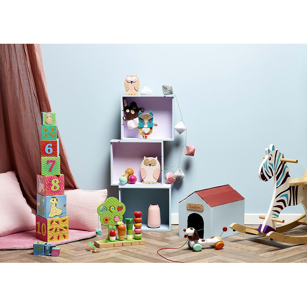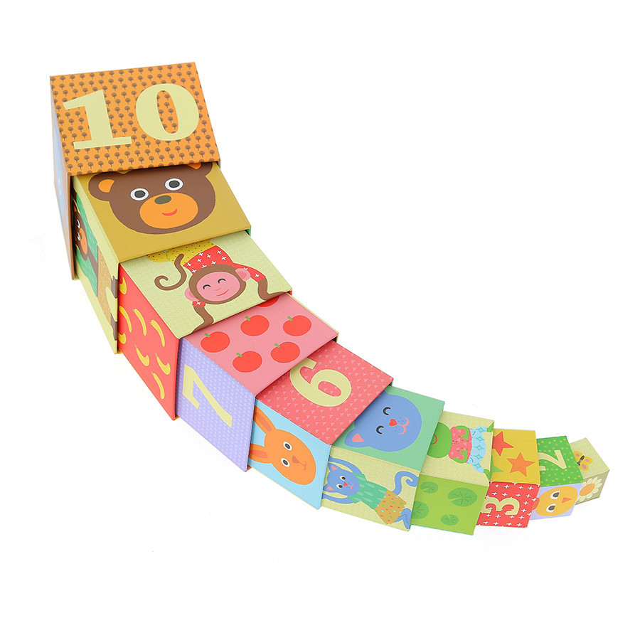 10 darab egymásba rakható, nagyméretű kartonkocka Mélusine Allirol állatos illusztrációival. A kicsik építhetnek, számolhatnak, állatokat és színeket tanulhatnak, miközben fejlődik az egyensúlyérzék és a szem-kéz koordináció. A torony akár 87 cm magas is lehet, mégis kicsire csomagolható. Könnyű, mégis tartós kivitel; környezetbarát nyomtatás. Első építőjáték ajándékba is remek.