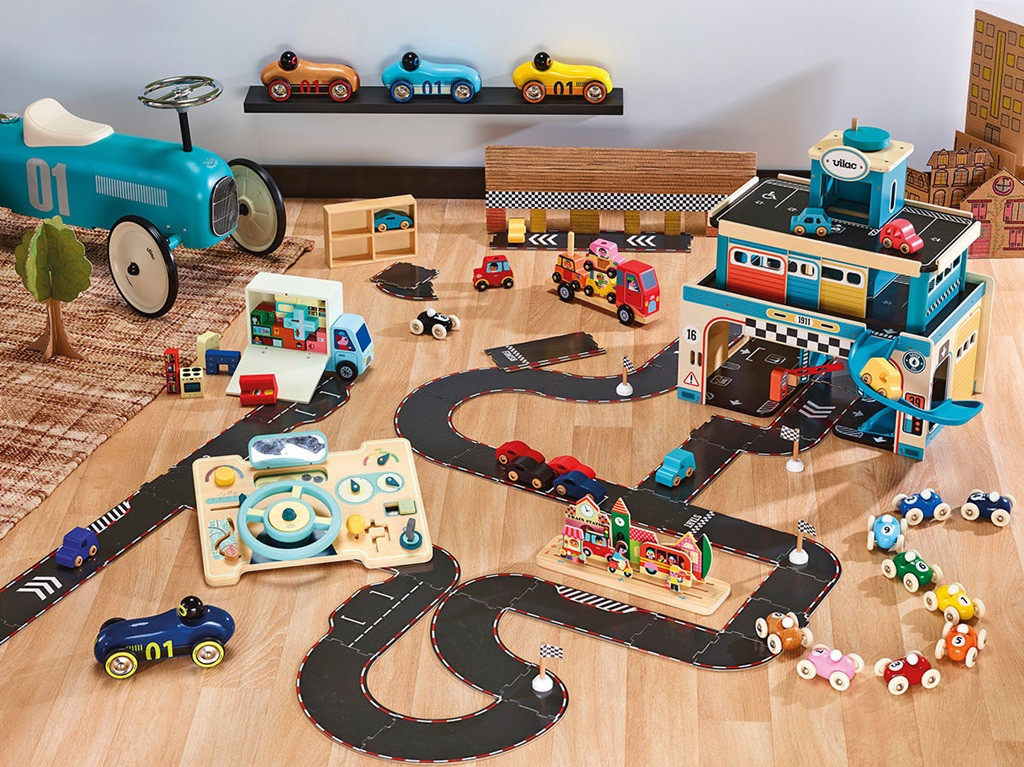 • Építő- és szerepjátékok: fa építőkészletek, járművek, babaházak és piacos szettek, amelyek a kreativitást és a szerepjátékot ösztönzik.
