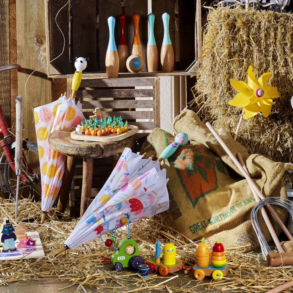 • Építő- és szerepjátékok: fa építőkészletek, járművek, babaházak és piacos szettek, amelyek a kreativitást és a szerepjátékot ösztönzik.