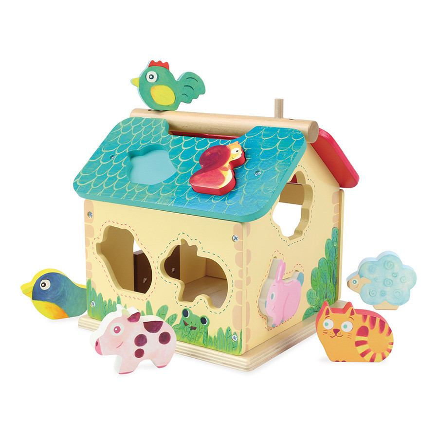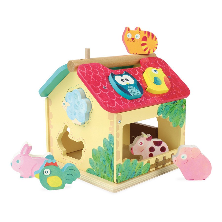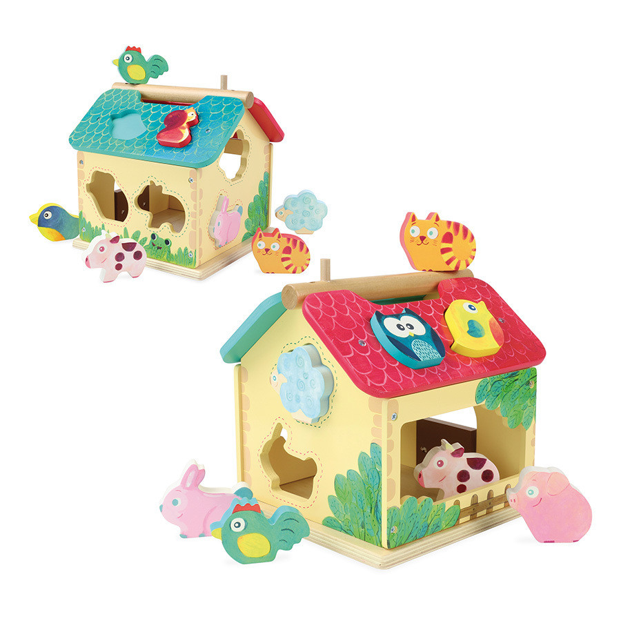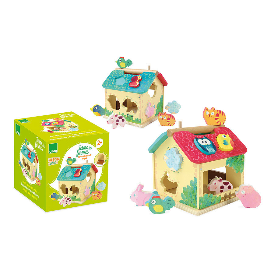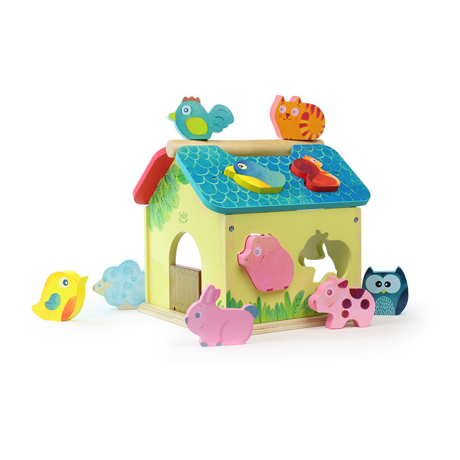 Színes, vágott formájú farmház 10 darab fából készült állattal. A gyerekek játék közben ismerik meg a formákat, színeket és állatneveket, miközben fejlődik a finommotorika és a szem-kéz koordináció. A masszív elemek kézre állnak, a házikó pedig praktikus tárolóként is szolgál. Mesélésre hívó készlet, amely hosszú éveken át ösztönzi a szerepjátékot és a kreativitást. Óvodás korosztálynak tökéletes választás.