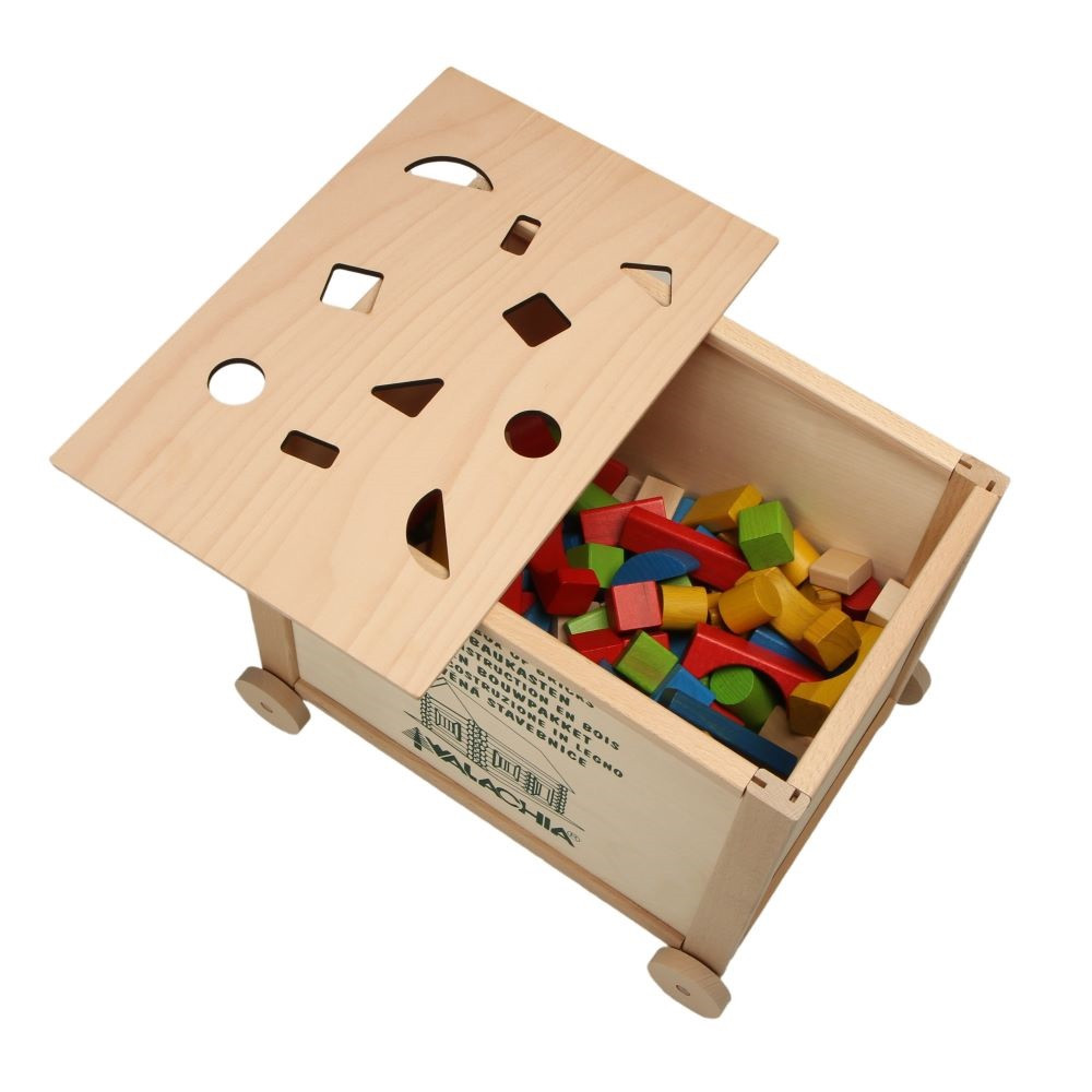 Praktická drevená debna v prírodnom dizajne je vyrobená z bukového dreva a preglejky a je opatrená drevenými kolieskami pre ľahšiu manipuláciu. Ukrýva v sebe 300 farebných kociek najrôznejších tvarov, ktoré presne padnú do otvorov vo veku. Pri vkladaní kociek sa rozvíja nielen zručnosť a logické uvažovanie, ale deti si taktiež precvičia rozpoznávanie farieb a naučia sa pomenovať rôzne tvary. A navyše drevené kocky poslúžia aj ako zábavná stavebnica. Táto veľká vkladačka ponúka nielen bezpečnú a zábavnú hru, ale aj udržateľnú alternatívu k plastovým hračkám, a približuje deťom prírodné materiály a českú remeselnú tradíciu. Drevená debna je vhodná do detských izbičiek, do materských škôl alebo školských družín. Hlavné vlastnosti: rozvíja zručnosť a logické uvažovaniepodporuje kreativitudebna s vekom s otvormi a 300 vkladacích tvarovnízka obtiažnosť (začiatočník)precízne a starostlivé spracovaniez odolného bukového drevavyrobené v Českej republike