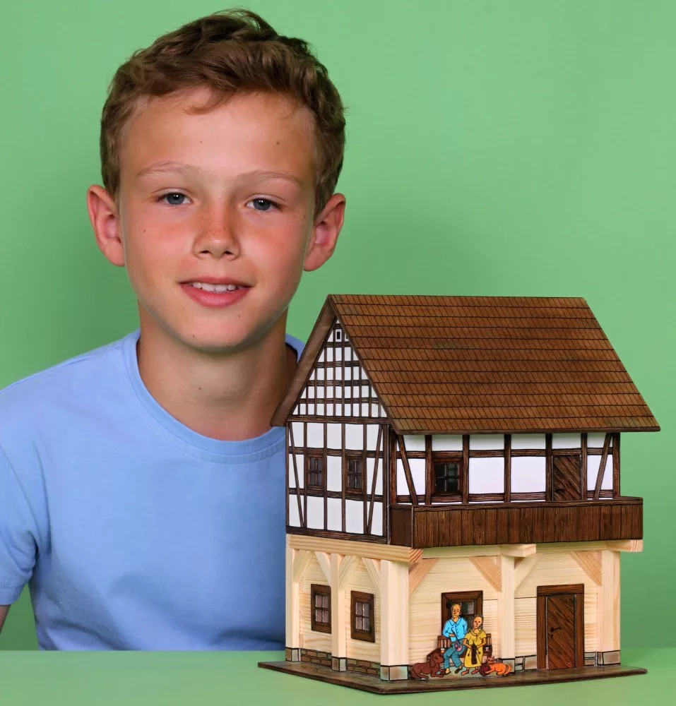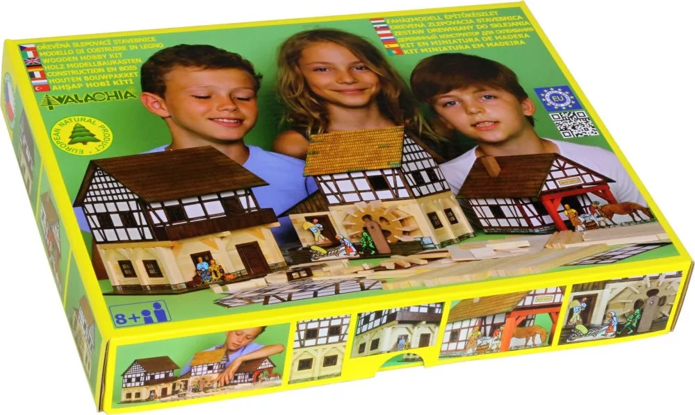A készletben található fa elemek, tetőrészek és nyomtatott kiegészítők együtt harmonikus összképet adnak. Az építést szerelési terv segíti, a kész modell pedig dekorációnak is remek választás.
