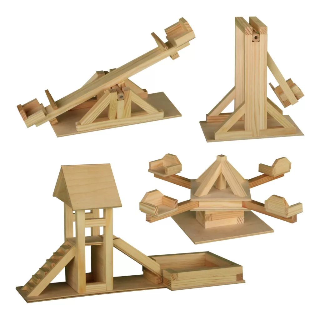 A gondosan megmunkált borovi fenyő elemekkel és az egyszerű képes útmutatóval szépen haladhattok lépésről lépésre. Az elkészült bútorok kedves kiegészítői lesznek a játékoknak és a miniatűr tereknek.