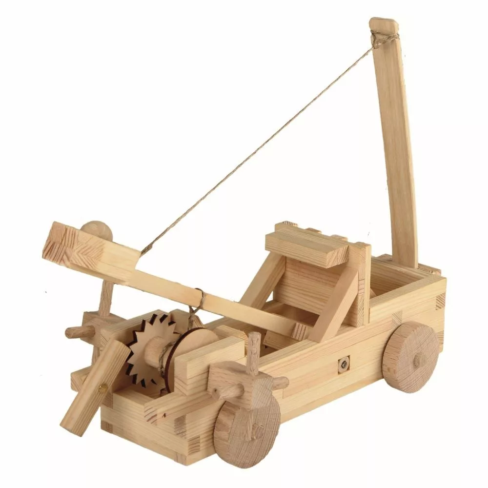 Katapult je stredoveký obliehací vojnový stroj používaný na výstrel väčšieho projektilu, zvyčajne kameňa alebo iného predmetu, ktorý mohol napáchať škody, smoly či horiaceho dechtu. V staroveku a stredoveku bol používaný pri obliehaní miest, pevností či hradov, obzvlášť s úmyslom zničiť alebo poškodiť hradby a následne s útočiacim vojskom preniknúť dovnútra.Nechajte sa očariť novým radom kreatívnych stavebníc Walachia CREATIVE KITS, skladajúcich sa z presne vyrobených a starostlivo opracovaných hranolov z borovicového dreva s rozmermi 9×9 mm v dĺžkach od 16 do 230 mm, hladkej preglejky s hrúbkou 3 mm a pri niektorých stavebniciach aj papierových potlačí. Jednotlivé diely sa lepia bežne dostupným lepidlom na drevo a papier (nie je súčasťou balenia). Každá sada obsahuje jednoduchý obrázkový návod, ktorý vás krok za krokom prevedie celou stavbou. Hlavné vlastnosti: 118 dielovpokročilá obtiažnosť zostaveniaprecízne a starostlivé spracovaniez odolného borovicového drevavyrobené v Českej republike     Označenie „Správna hračka“ je udeľované produktom, ktoré cielia na deti predškolského veku a vynikajú najmä výchovnými kvalitami, ale aj vysokým štandardom spracovania, komfortom používania a estetickou úrovňou. Zámerom tvorcov ocenenia je poskytovať vodítko a oslovovať rodičov i pedagógov, ktorí chcú ovplyvňovať smerovanie ponuky a za prvoradý považujú zdravý osobnostný rozvoj detí. Tým chcú tvorcovia podnecovať k rozširovaniu a vývoju nových hodnotných hračiek či hier. Označenie je udeľované od roku 1994 a je spoločným projektom Združenia pre hračku a hru, Asociácie hračka Únie výtvarných umelcov ČR a Asociácie predškolskej výchovy. Tieto združenia spoločne s Umeleckopriemyselným múzeom v Prahe a Mestským múzeom v Kamenici nad Lipou udeľujú ocenenie pri príležitosti festivalu Hračkobraní konajúceho sa každoročne od roku 2006 na zámku v Kamenici nad Lipou, kde môžete okrem iného vidieť stálu expozíciu všetkých ocenených hračiek.