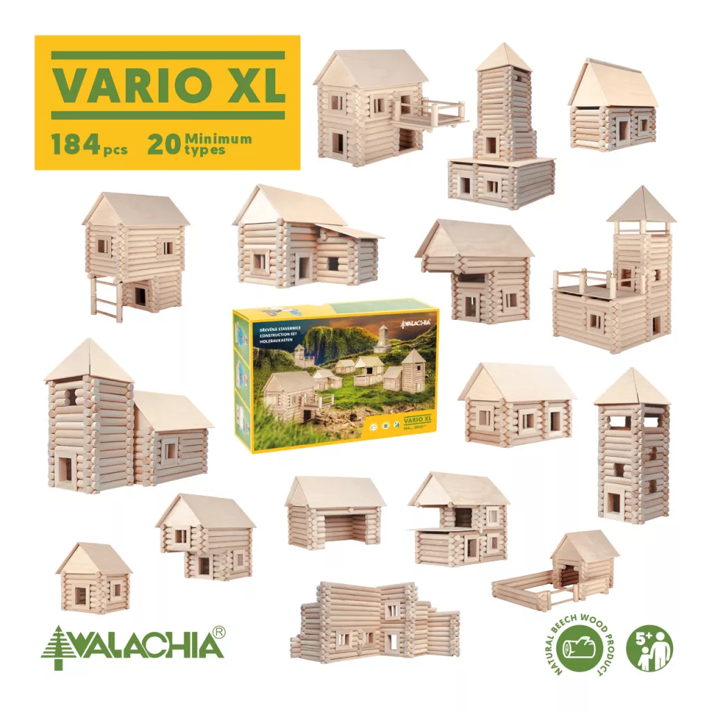 Az elemek könnyen kezelhetők, biztonságosak és más Vario készletekkel is kombinálhatók. Az építés fejleszti a kézügyességet, a térbeli gondolkodást és a kitartást, miközben igazán tartós, generációkon át örömet adó játék születik.